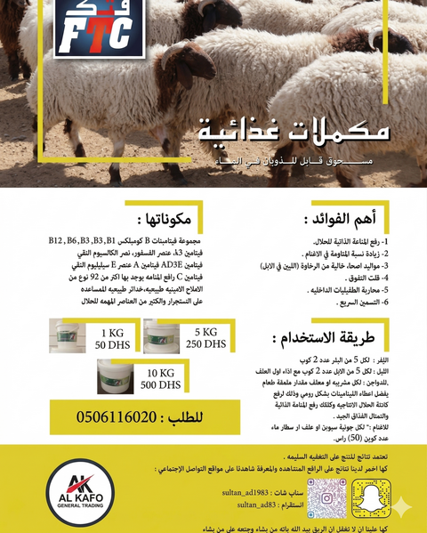 Pure Selenium with Vitamin E: This combination is crucial for preventing and treating "white muscle disease" (weakness or floppiness) in newborns, especially in camels and sheep. It also significantly boosts fertility.